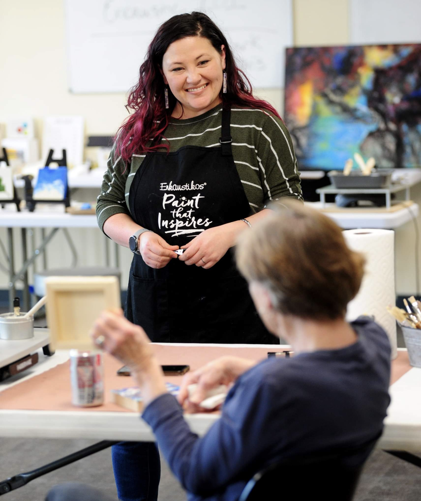 Kana utilized a variety of painting mediums before discovering encaustic painting. Roughly a decade after she first began working with encaustic painting, she still greets each work day with enthusiasm and determination. Currently working out of her studio at Lowe Mill Arts & Entertainment, a historic textile factory, Kana resides in Huntsville, Alabama. In addition to giving workshops, she frequently participates in regional and national art fairs and events.