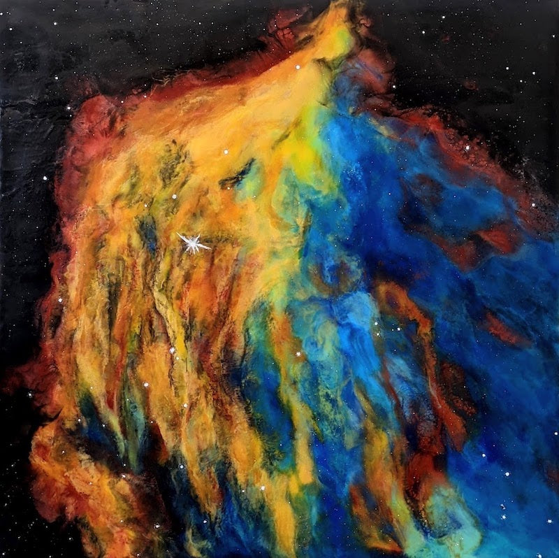 Kana Clark is a visual artist whose focus is encaustic painting and is determined to celebrate the universe through her works. She is known for creating works within the realm of all things outer space. Combining her love of nebulae and encaustic painting, Kana is one of the first painters to depict nebulae and exoplanets in this medium.